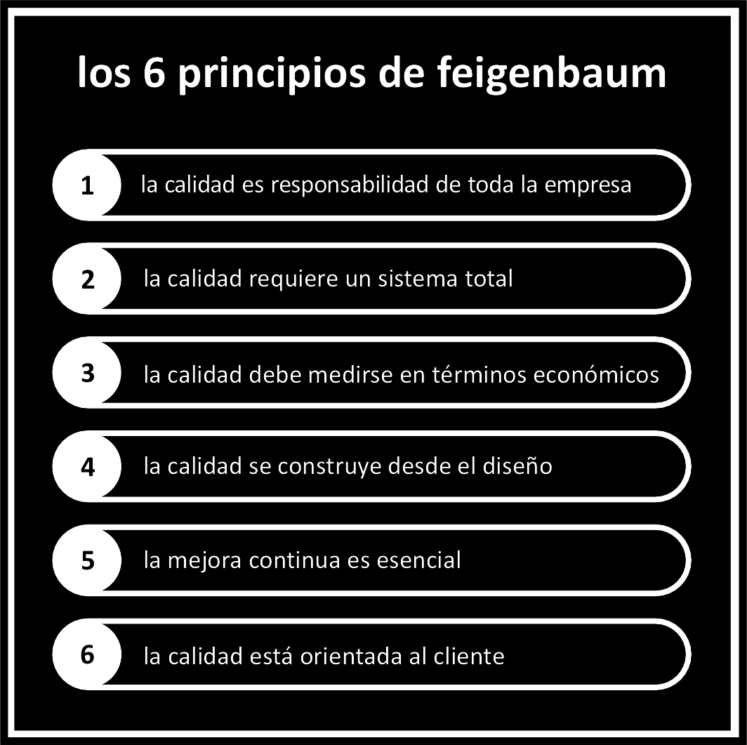 Así, Feigenbaum formuló seis principios inevitables que se han de cumplir cuando se habla de calidad total:
